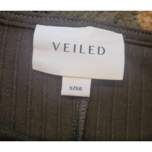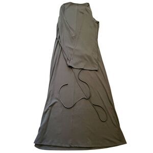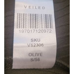 Veiled Dress Women's Medium Olive Green Bell Sleeve Tie Waist Maxi Ribbed Modest