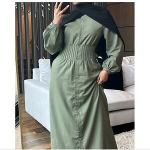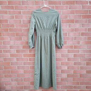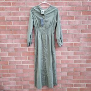 Veiled Lila Linen Blend Button Down Cinched Waist Maxi Dress XXS Petite Short