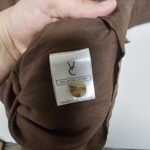 Veiled New York Modest Linen Blend Chocolate Mocha Brown Shirt Dress Modest