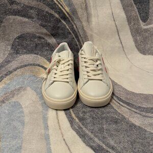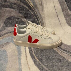 Veja Campo Canvas White Pekin Red Leather Womens Size 6.5