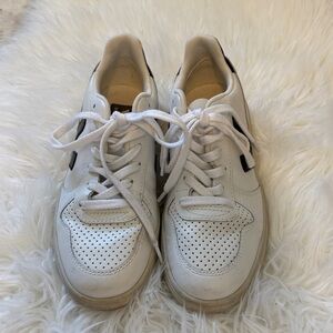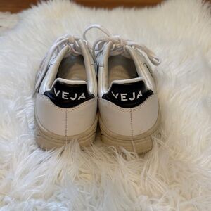 Chic Veja sneakers in cream with bold black details. Ideal for everyday style.