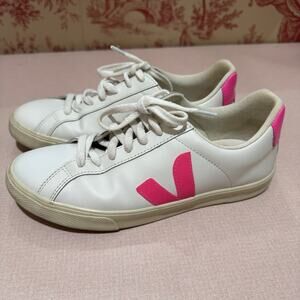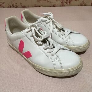 Veja Esplar sneakers shoes in white leather pink "V" logo size 7 38