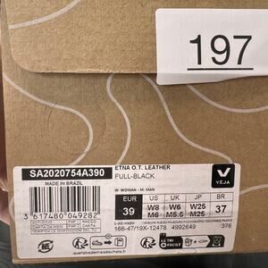 Veja Etna O.T. Leather Hook & Loop Sandal Black Women's 8M/Men's 6/EU 39