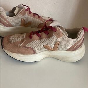 Chic Veja sneakers for kids. Pink and cream design. Ideal for play and style.