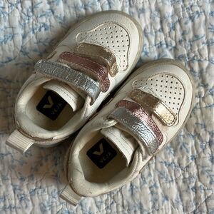 Veja Kids V-10 Velcro Leather Shiny Metallic Trainers Sneakers White Multi Size 6
