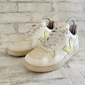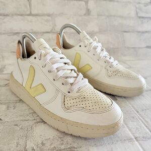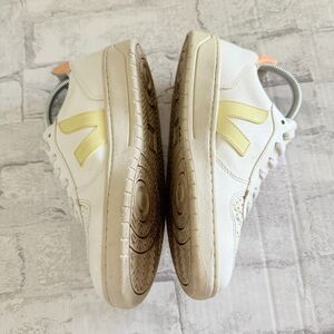 Veja V10 CWL White Sun Peach Trainers Vegan Leather Eco Friendly Lace Up Sz 6