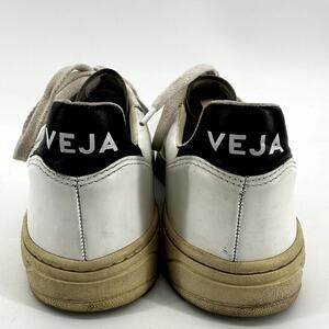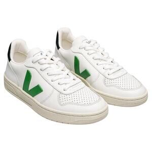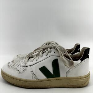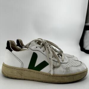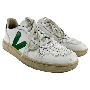 Veja V10 Sneakers Leather Lace Up Low Top Logo Round Toe White Emeraude 9