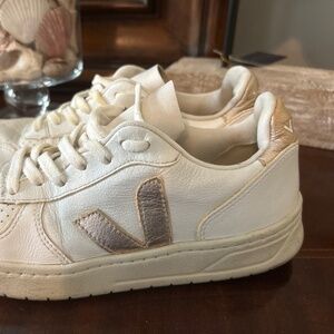 White Veja V-10 with gold I wore but still has a lot of life left in them i paid $170 for them will take $50