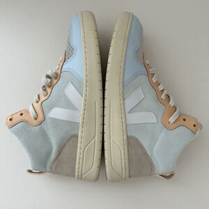 Veja V-15 Leather And Suede Sneaker Womens 8 Jade White Multico High Top Shoes