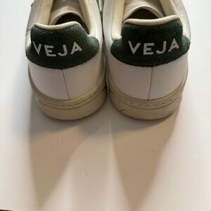 Experience timeless style with Veja's white and green sneakers, featuring a clean low-top silhouette and durable leather upper. These sneakers are perfect for everyday wear, offering a blend of comfort and understated elegance. The monochromatic design is complemented by subtle green accents, making them a versatile addition to any wardrobe.