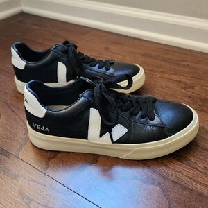 Veja Women's Campo Leather Black White Sneakers Size US 8 / EUR 39