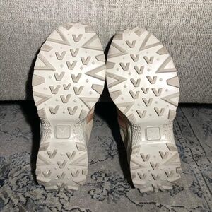 Stylish Veja sneakers with a beige and gray color scheme. Comfortable and trendy design. Perfect for casual wear.