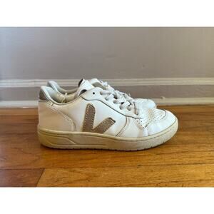Veja Women's V-10 Leather Metallic Logo Patch Low-Top Sneakers size 39 (us 8)