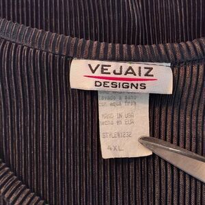 Vejaiz Designs Tunic Top Womens Size 4XL Mini Pleats Black Stretch Long Sleeves
