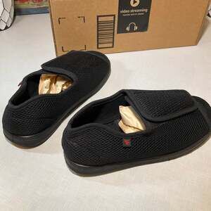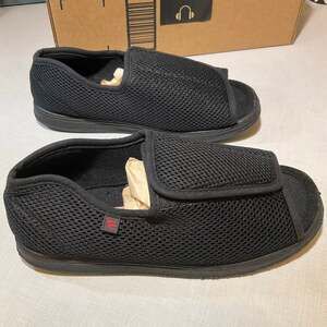 JIONS Unisex Men Women Adjustable Velco Slipper Swollen Feet Diabetic Edema Wide Shoes (37/7.5 Women/5 Men, G- Breathable Black)