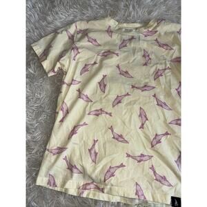This is a fantastic, unique and great shape Velero kids Sz. 7 yellow tee with a super fun pink shark design. Soft, comfortable & great shape. Cute & fun!