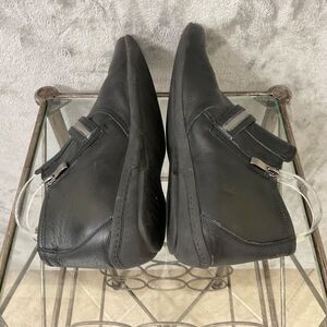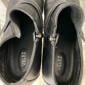Velez soft Genuine Leather Low shaft Ankle booties - Boots women's 41/US size 9.5- 10 US hook/loop Futuristic, minimalist, contemporary look low comfort heel show usual wear scuffs, scratches, lint dust dirt.