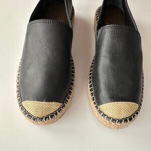 Velez NWT Artisan Jute Detail Slip On Black Leather Espadrilles EU 37 US 6