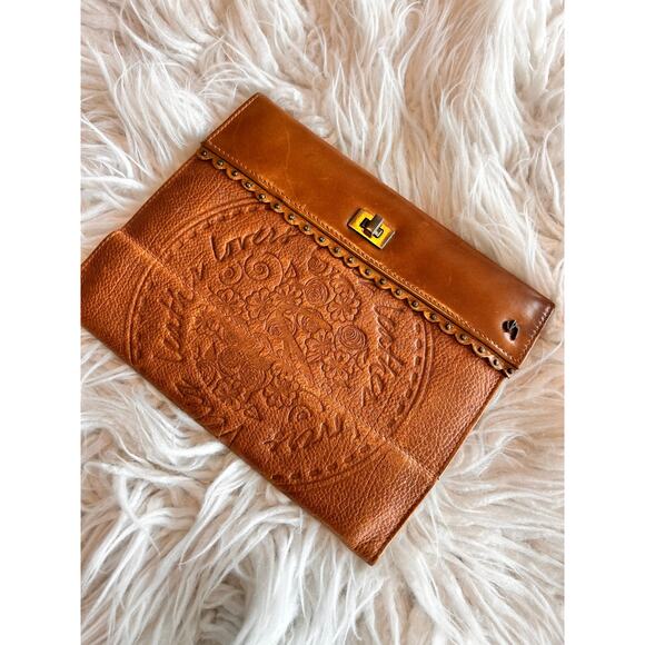Velez Women's Embossed Leather Clutch Wallet Timeless Everyday Casual Brown