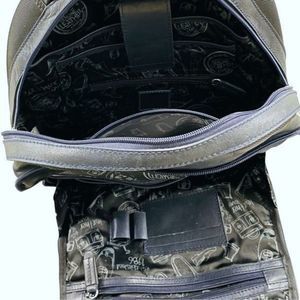Velez Navy Handcrafted in Columbia Large Leather Laptop Lined Backpack — EUC