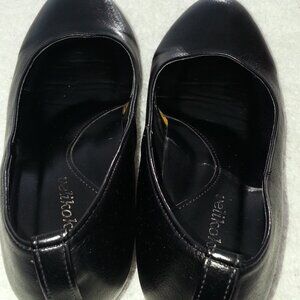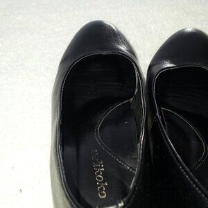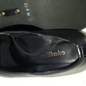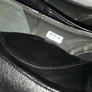 One pair of 22.5 (Japan Size) or 5.5 USA Small black worn waitress pumps. These are cute and acquired in Tokyo at the Intercontinental Hotel. Cute with black tights. No rips or tears. Sold as is.