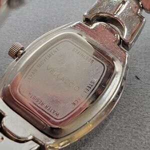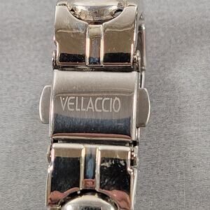 Vellaccio Quartz wristwatch with stainless steel bracelet. Water resistant, featuring Japan movement. This watch has an elegant oval face with a chronograph style design and luminous hands. Stainless steel back and durable clasp. Perfect for daily wear or formal occasions.