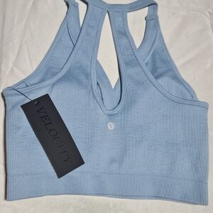Stylish ribbed bra with button detail. Halter neck design. Comfortable and chic.