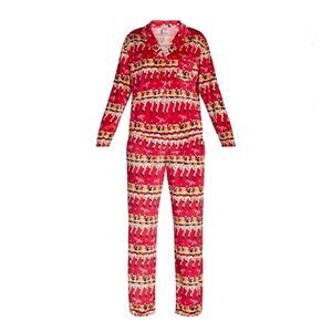 Baking cookies all day long to trimming the tree with the fam, nothing beats the cozy comfort and festive vibes of this 2-Piece Pajama Set. Supremely soft, these velour PJ's feature a classic notch-collar top with a button front and matching pants with pockets. The allover print captures all the magic of the holidays. A perfect set to gift to yourself or someone special.