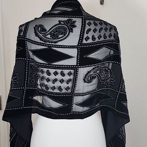 Velour Partial Silk Burnout Paisley Print Shawl With Tassels