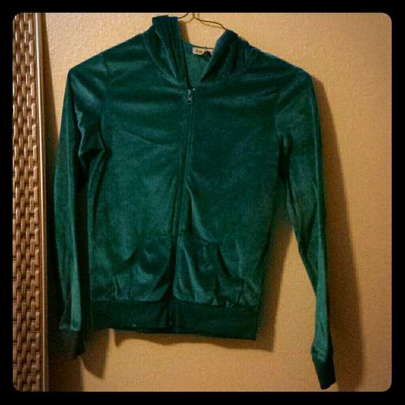 Turquoise light velour jacket no flaws. I have matching pants if interested. Fits more like a small.
