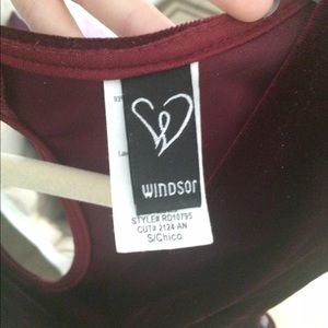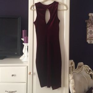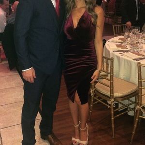Love this dress! Perfect for a wedding or holiday party! Front is low cut and has a slit up the side. It is a velour stretch fabric. Purchased at Windsor ❤️