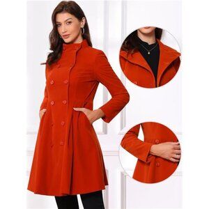 Velvet A-Line Coat for Women Light Red
