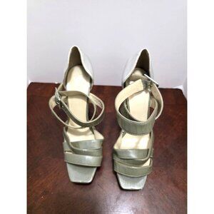 Velvet ANGEL Metallic Silver & Olive Green Strappy High Heel Sandals Buckle Clos