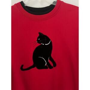 Velvet Black Cat Crazy Cat Lady Red Sweatshirt Crew Pullover Grandma Size Large