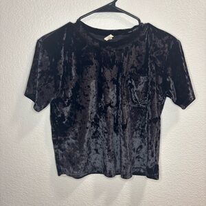 Elevate your style with this chic velvet black top. Perfect for any occasion, this top offers a luxurious feel and a trendy look.
