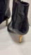 Chic heeled boots with striking gold accents. Sleek black design. Perfect for a stylish look.