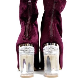Velvet Block Clear Lucite Perspex Dress Bootie