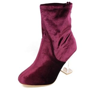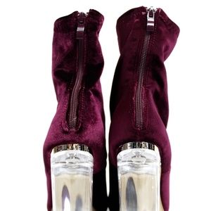 Velvet Block Clear Lucite Perspex Dress Heel Ankle Boot Bootie