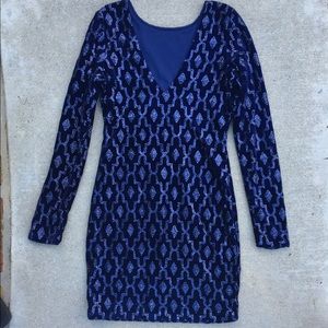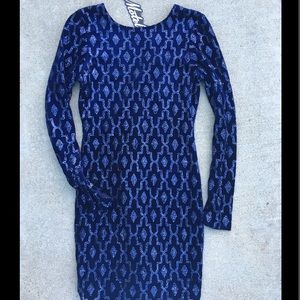 Motel Rocks. Velvet bodycon long sleeve with sequins. New with tags. Measures 33" in length.