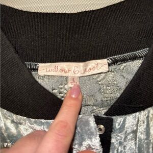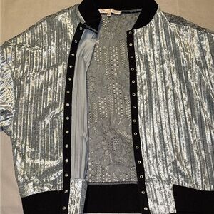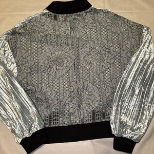 Velvet Bomber Jacket Snap Buttons Sheer Lace Back Women’s Size Large Metallic