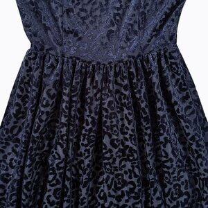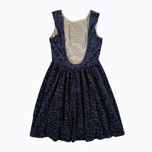 Velvet Burnout Dress SzS Navy Scoop Back Flocked Cheetah Fairy Grunge Whimsigoth