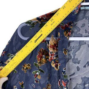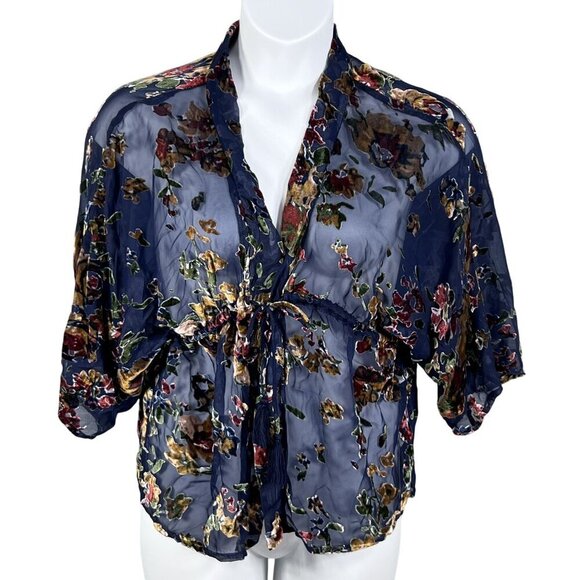 Forever Lovely Womens Size Small Oversized Velvet Burnout Floral Sheer Navy Kimono Top Tassel Tie Artsy Bohemian Whimsigoth Fairy Grunge