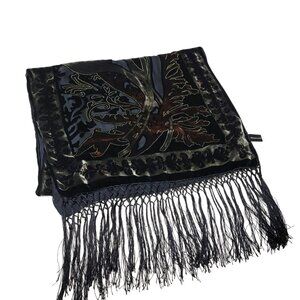 Velvet Burnout Silk Scarf Floral Art Deco Style Wrap Shawl Fringe