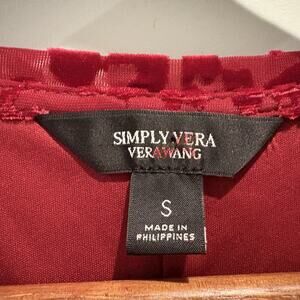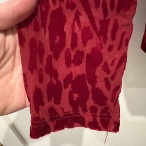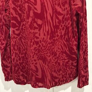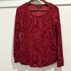 This Small Red Velvet Burnout Top from Simply Vera Vera Wang features a unique animal print pattern with a romantic gothic vibe. The long sleeve blouse has a round neck and a pullover closure for easy wear.