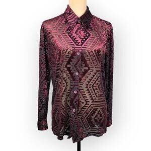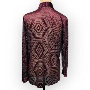 Velvet Burnout Top Vintage Medium Burgundy Aztec Whimsigoth Holiday Fairy Grunge