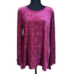 Cato velvet burnout top. High low hem. Flare sleeves.
