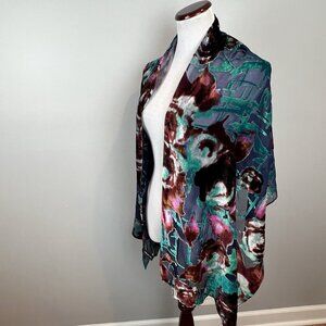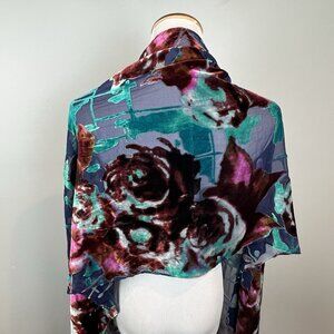 Velvet Burnout Wrap Shawl Fairycore 72 x 22" Jones New York Blues Greens Pinks