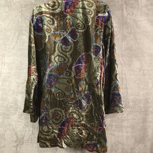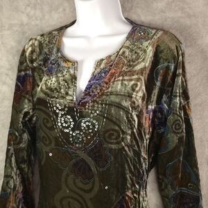 Velvet Butterfly Print Tunic Top Boho Embellished Long Sleeve Whimsical L