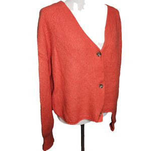 Velvet, Button Up, V-Neck, Cardigan, Soft, Boxy, Stretchy, Sweater, Orange, Lg