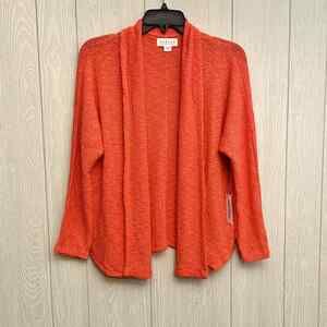 Velvet By Graham And Spencer Coral Hibiscus Orange Cardigan Sweater Small NWT